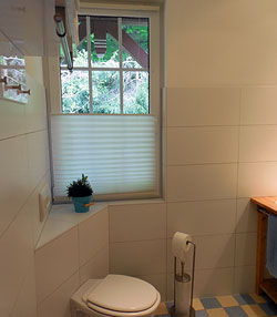 Ihr Bad ist ausgestattet mit Dusche, WC, Fön und Kosmetikspiegel.